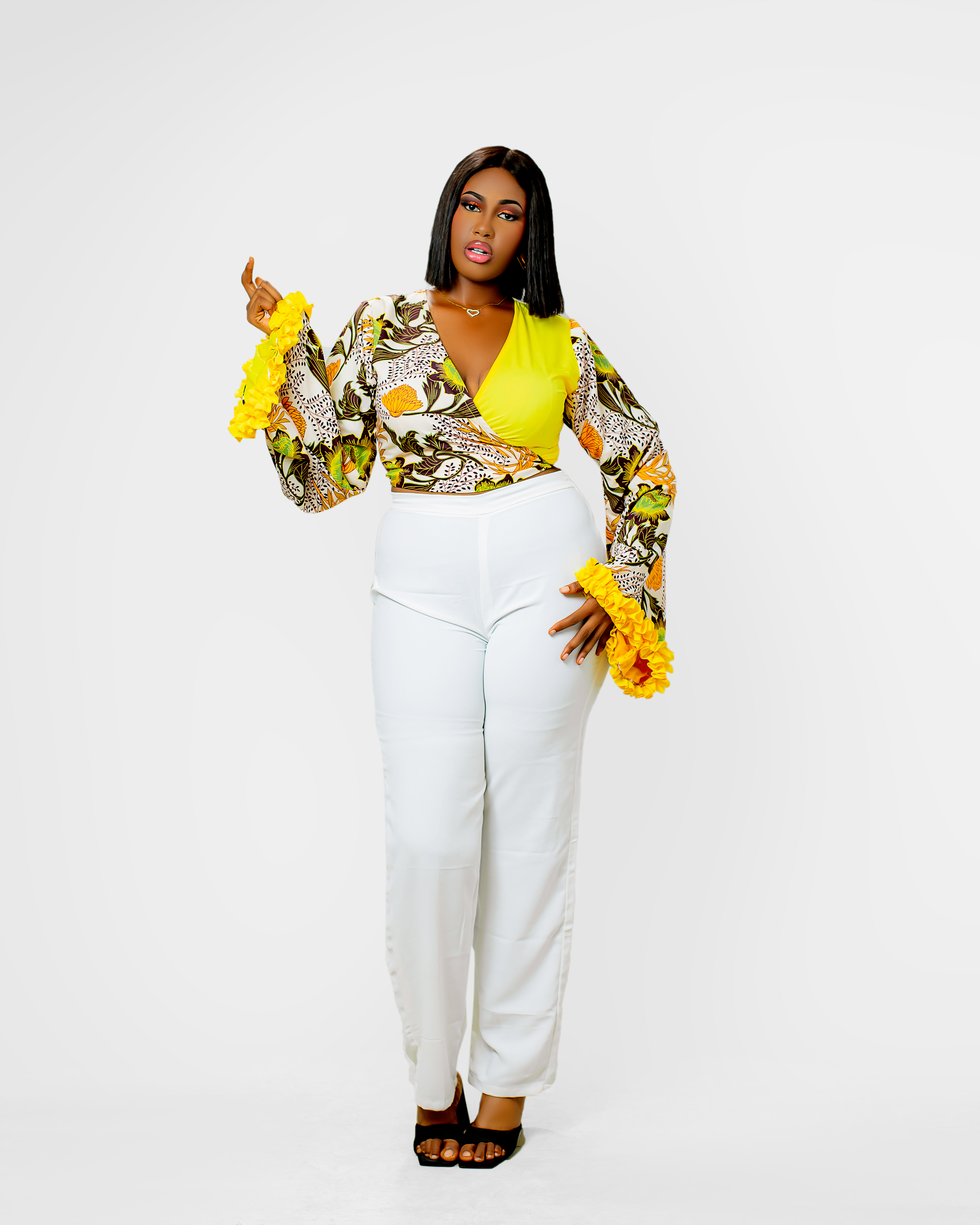 • Architectural Dual-Tone Vest: The centerpiece of the outfit is a structured black vest featuring a unique sky-blue asymmetric panel and a vertical row of oversized white buttons for a high-fashion, graphic edge.