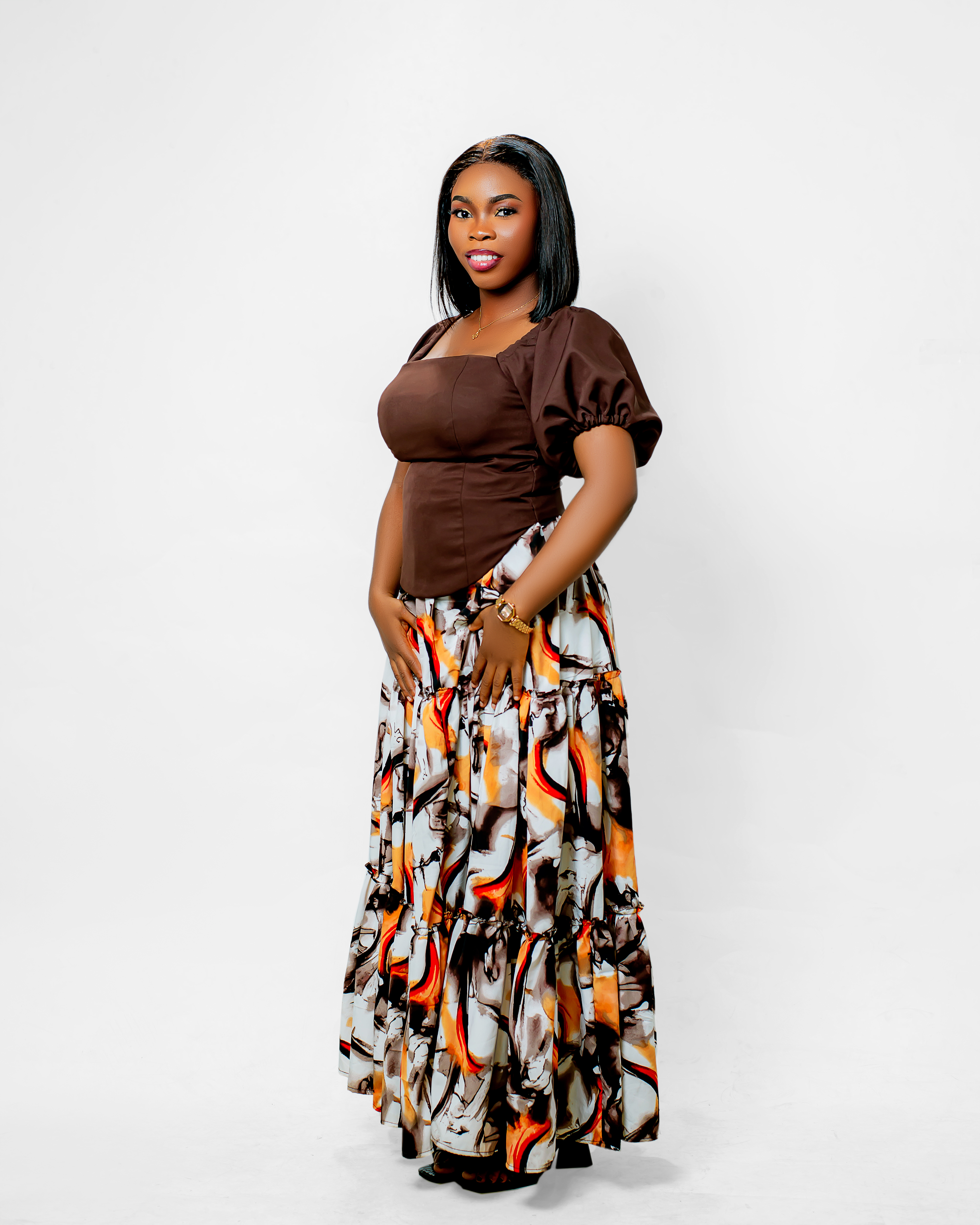 - Intricate Geometric Print: A sophisticated "Ankara" style pattern that combines traditional motifs with a modern, symmetrical layout.