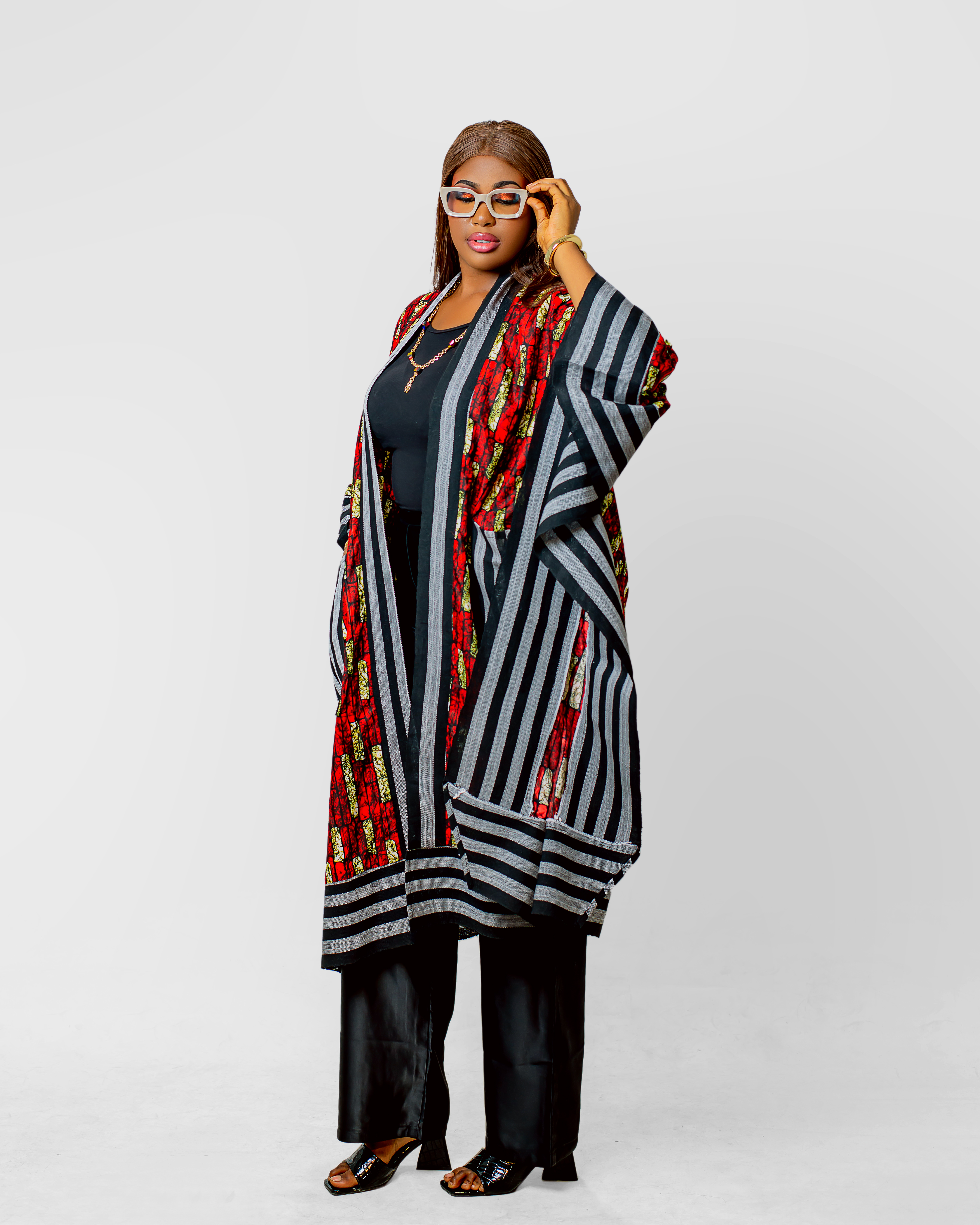 - Bold Abstract Art Print: A high-contrast "brushstroke" pattern in vibrant red, black, and white provides a contemporary, avant-garde aesthetic that stands out in any crowd.