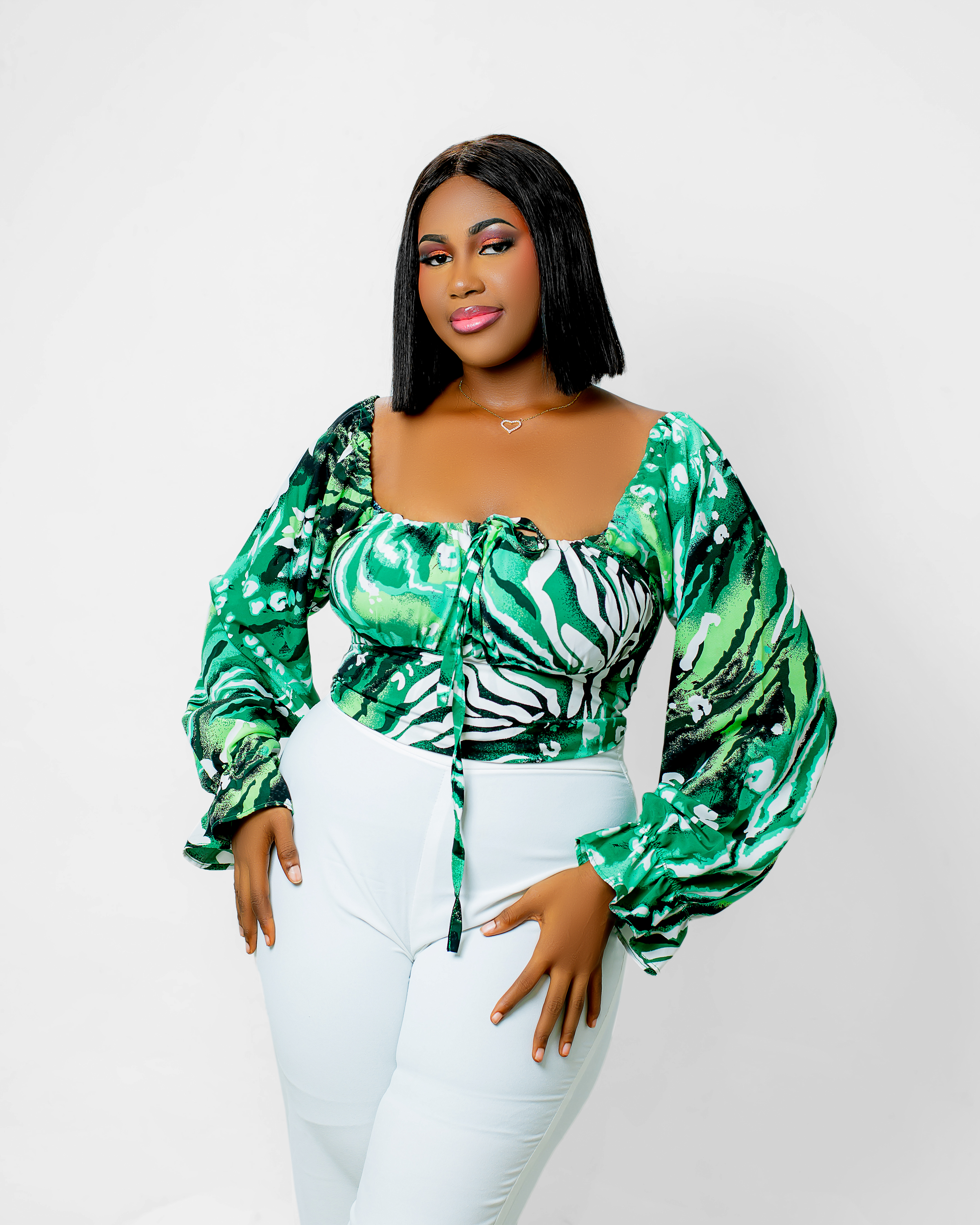 "I am obsessed with this blouse! The emerald green print is so vibrant and looks even better in person. The lantern sleeves are pure drama in the best way possible—they have such a beautiful, airy flow to them. I paired it with white high-waisted trousers and felt like I stepped off a runway. If you want a piece that turns heads, this is it!"
