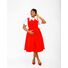 - Vibrant V-Neck Pinafore: The sleeveless overdress features a deep V-neckline and a fitted bodice that flows into a voluminous, pleated midi skirt for a classic feminine shape.