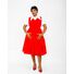 - Set Includes: 1x Red Pinafore Dress, 1x White Puff-Sleeve Blouse.